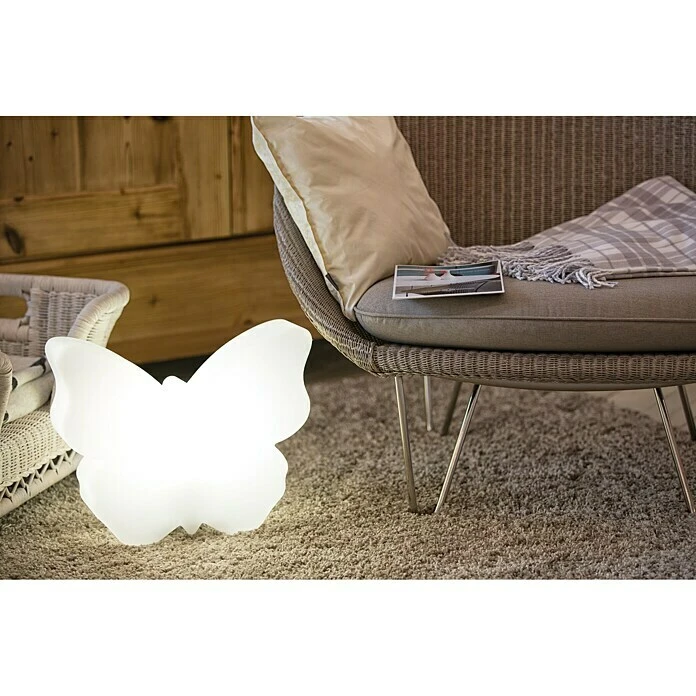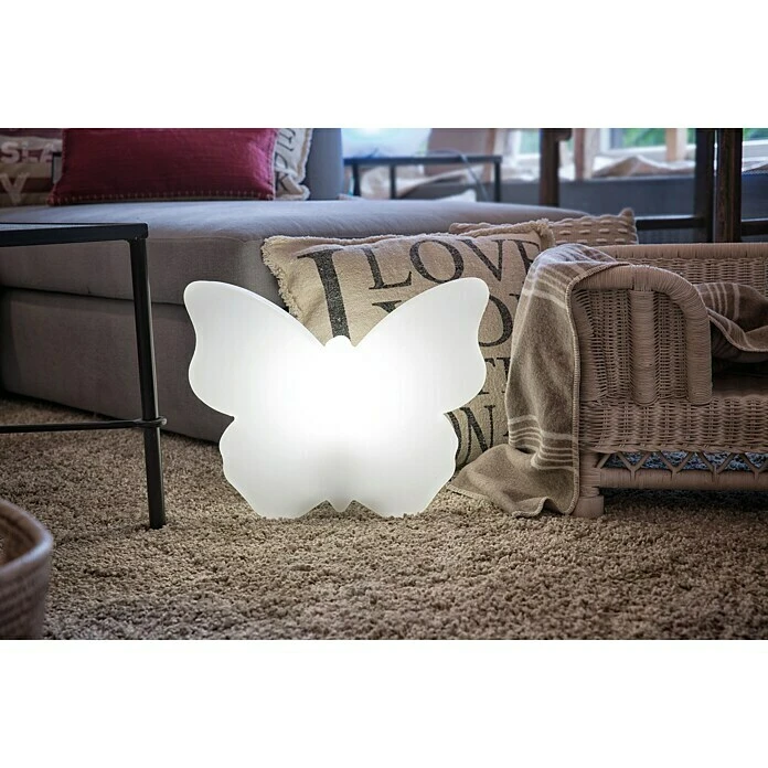 Die LED-Dekoleuchte Shining Butterfly Mini von 8 Seasons Design zaubert ein gemütliches und stimmungsvolles Licht in die eigenen vier Wände. Sie kann dank ihrer UV- und Spritzwasserbeständigkeit für den Innen-, als auch für den Außenbereich eingesetzt werden und bietet damit größtmögliche Flexibilität. Sie schafft ein Wohlfühlambiente zu jeder Jahreszeit und lässt sich gut mit verschiedenen Einrichtungsstilen kombinieren. Mit dem mitgelieferten Solarmodul kann der Speicher der Dekoleuchte tagsüber aufgeladen werden und bis zu 6h durchgängig leuchten. Bei Dämmerungseinbruch schaltet sie sich automatisch ein. Ihre Kabellänge von 4 m reicht aus, um sie leicht im Außen- oder Innenbereich positionieren zu können. Eine zeitlose und vielseitig einsetzbare Beleuchtung ist mit dieser LED-Dekoleuchte gewährleistet.