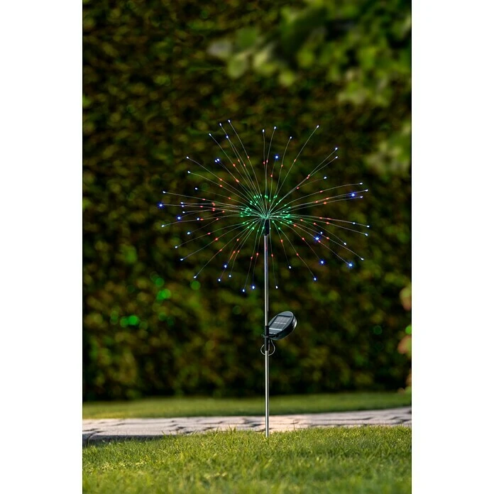 Diese RGB-Solarleuchte zeichnet sich durch ein umweltfreundliches Solarpanel aus, mit dem die Leuchte immer wieder aufgeladen wird. Durch die Schutzart IP44 ist die Leuchte für den Außeneinsatz geeignet und vor Spritzwasser geschützt. Die Kupferdrähte am Kopf der Leuchte sind flexibel und können ganz nach Ihren Vorstellungen in eine beliebige Form gebogen werden. Somit ist die Solarleuchte die perfekte Dekoration für Ihren Garten, Balkon oder Terrasse. Die RGB-Farbsteuerung ermöglicht es die Leuchte in 8 verschiedenen Modi blinken zu lassen. Schieben Sie den Schalter auf „ON“, um die Leuchte tagsüber 4-6 Stunden aufzuladen. Mit voller Aufladung strahlt die Leuchte nachts 6-8 Stunden. Ein wiederaufladbarer 1,2 V 600 mAh Ni-MH-Akku ist im Lieferumfang enthalten.