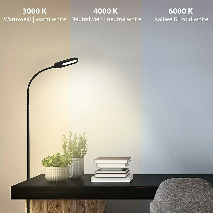 Die schicke LED-Stehleuchte von Briloner, ist aus Metall und Kunststoff gefertigt und sieht in der Farbe Schwarz trendig und modern aus. Die Lampe ist mit einem fest verbautem LED Modul ausgestattet. Mit einer Leistung von 8 Watt und einer Lichtleistung von 600 Lumen erzeugt sie ein angenehmes und zugleich helles Licht. Außerdem lässt sich die Leuchte über einen Touchschalter in drei Stufen dimmen und in der Lichtfarbe verstellen.
