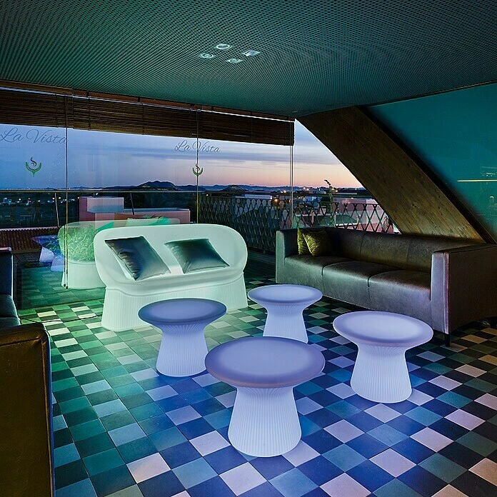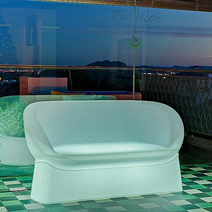 Dieses beleuchtete Sofa ist ebenso als dekorative Design-Außenleuchte verwendbar und setzt auffällige Lichtakzente im Garten. Die Leuchte lässt sich vielseitig einsetzen und kann z.B. auch Interieur als dekorative Sitzmöglichkeit verwendet werden. Das im Lieferumfang enthaltene Energiespar-Leuchtmittel gibt eine helle tageslichtweiße Lichtfarbe ab. Je nach verwendetem Leuchtmittel kann die Lichtfarbe jedoch variiert werden, sodass die Leuchte als individuelles Dekorationselement auf jeder Party eingesetzt werden kann und somit zum unbedingten Hingucker wird. Für den Betrieb der Leuchte wird ein Stromanschluss benötigt.