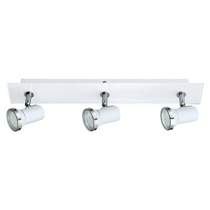 Der 3-flammige LED-Deckenstrahler von Eglo besitzt ein zeitloses Design und eignet sich besonders gut zur Anbringung im Badezimmer. Seine Optik aus verchromten Stahl und weißen, klaren Glas sind ein besonderer Lichtblick. Er hat ein fest verbautes, energiesparendes und äußerst langlebiges GU10-Leuchtmittel, welches klares, warmweißes Licht von sich gibt. Hervorragend eignet sich der LED-Deckenstrahler zur Nutzung im Badezimmer. Dank der Schutzart IP44 ist er spritzwassergeschützt und kann somit auch zur Beleuchtung eines Duschinnenraumes oder über der Badewanne genutzt werden. Durch das klare Design, schafft der Strahler viele Kombinationsmöglichkeiten mit Einrichtungsstilen und kann mit anderen Leuchten der gleichen Serie kombiniert werden.