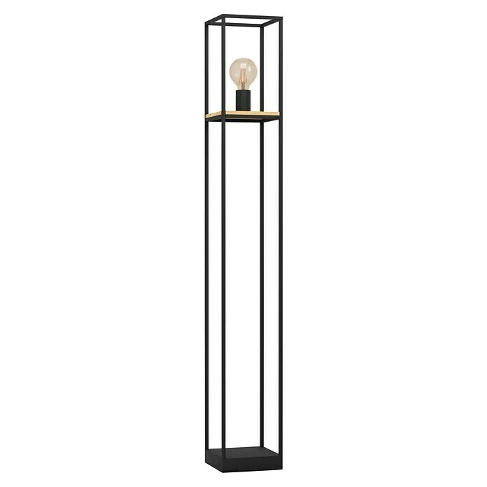 Die Stehleuchte LIBERTAD besteht aus einem quaderförmigen, schwarzen Metall-Rahmen, der im oberen Drittel mit einer dekorativen Gummibaumholz-Platte kombiniert wurde. Die innenliegende, sichtbare Fassung unterstreicht den minimalistischen Look der Leuchte. Ein bequemes Ein- und Ausschalten ist über einen Fußtrittschalter am Kabel möglich. Die Stehlampe fügt sich in viele verschiedene Einrichtungstrends ein und bietet eine moderne Beleuchtung im Wohnzimmer, Schlafzimmer oder Esszimmer. Das abgebildete Filament-Leuchtmittel ist nicht im Lieferumfang enthalten. Geeignet ist die Leuchte für jedes Leuchtmittel mit E27-Sockel.