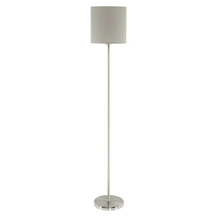 Die Eglo Stehleuchte Pasteri passt sich durch ihre klassische Optik vielen Einrichtungsstilen und Wohnräumen hervorragend an. Sie ist in dezenten Farben gehalten und aus Stahl mit nickel-matter Oberfläche und einem Schirm aus Textil gefertigt. Auf dem Sockel mit einem Durchmesser von 23 Zentimetern ist über einem 157,5 Zentimetern hohen Gestell ein schlichter, aber schicker Textilschirm angebracht. Die Stehleuchte ist per Fußtrittschalter bedienbar. Sie ist für Leuchtmittel mit maximal 60 Watt der Energieklasse von A++ bis E geeignet. Die Strahlkraft ist also nach individuellen Wünschen wählbar.