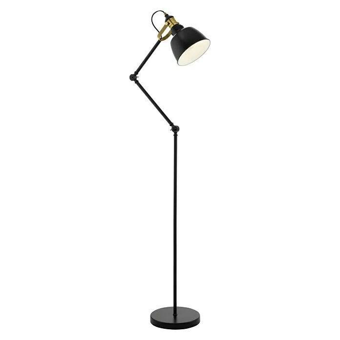 Die Stehleuchte Thornford von Eglo hat ein interessantes Industrie-Design und lässt sich dank ihrem klaren Stil in viele Einrichtungsstile problemlos einfügen. Die Leuchte ist aus hochwertigen, schwarzen Stahl gefertigt und verfügt über einen schwenkbaren Kopf, welcher einen kleinen goldenen Farbakzent trägt. Sie ist für Leuchtmittel der Energieeffizienzklassen A ++ bis E mit E27- Fassung und maximal 40 Watt geeignet. Die Helligkeit, Strahlkraft und Lichtfarbe lassen sich über die individuelle Wahl eines Leuchtmittels selbst einstellen. Über den verbauten Schalter wird die Leuchte bequem ein- und ausgeschaltet. Sie eignet sich ideal dafür, um mit anderen Leuchten der gleichen Serie kombiniert zu werden.