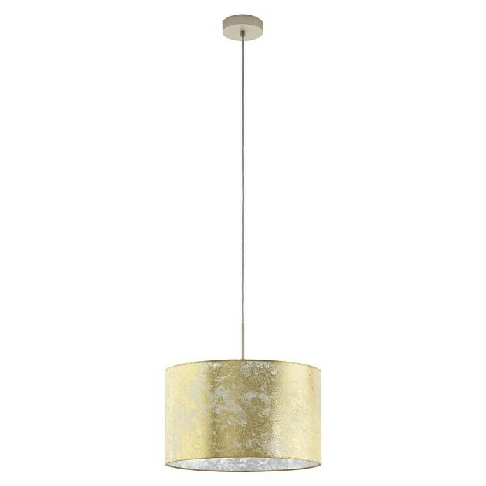 Die Viserbella Pendelleuchte von Eglo verfügt mit ihrem goldfarbenen Lampenschirm über ein elegantes und glamouröses Aussehen. Sie eignet sich für den Einsatz in vielen Räumen des Wohnbereichs und passt sich auch verschiedenen Einrichtungsstilen sehr schön an. Hiermit kann sie sich sowohl mit der Beleuchtung funktional als auch der Optik dekorativ ins Raumgefüge einfinden. Die Pendelleuchte hat eine klassische E27-Fassung und ist für Leuchtmittel der Energieeffizienzklassen von A++ bis E mit maximal 60 Watt geeignet. Hierdurch lassen sich Helligkeit und Lichtfarbe über Auswahl des Leuchtmittels beeinflussen. Um eine smarte Steuerung der Lichtfarbe zu erreichen, bieten sich passende smarte LED-Leuchtmittel an.