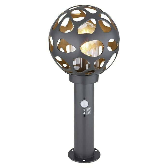 Sehr stylisch und modern beschreibt sich die 45cm hohe Sockelleuchte HILARIO aus anthrazitem Edelstahl. Durch die Dekorstanzungen wird dieses Modell zum echten Hingucker in Ihrem Garten oder Eingangsbereich. Des Weiteren verfügt die Lampe über einen integrierten Bewegungsmelder mit folgenden Eigenschaften H: 1-2,5m, 90°, max. 8m. Die Schutzart IP44 schützt die Leuchte vor Spritzwasser und ist somit ideal für den Außenbereich. Die Leuchtmittel können ganz nach Belieben ausgewählten werden um so das perfekte Lichtergebnis zu erzielen.