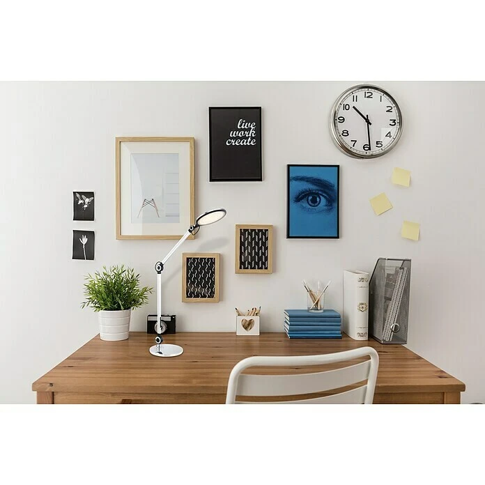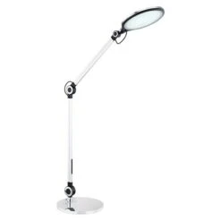 Diese formschöne Tischleuchte überzeugt durch ihre neutrale Materialkombination und schlichten Design. Durch das inkludierte 10 Watt LED-Leuchtmittel leistet diese Lampe bis zu 660 Lumen starkes Licht. Die Gelenke sind individuell verstellbar und somit lässt sich der Leuchtenkopf wunderbar fokussieren. Mit der Touchfunktion und dem Touchdimmer wird das Ein-/Ausschalten dieser LED Lampe zu einem besondern Leuchterlebnis. Die Lichtsfarbe dieser 103,5 cm hohen Tischleuchte lässt sich von warmweißen (3000 Kelvin) bis hin zu kaltweißen (6000 Kelvin) verstellen und fixieren. Die Tischlampe erfreut mit Sicherheit jeden Besitzer mit ihrem einmaligen Charme.