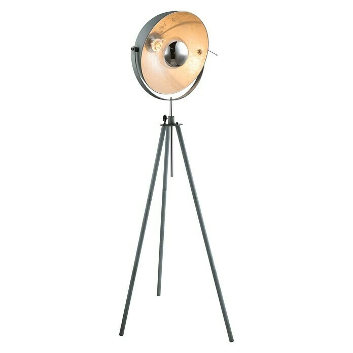 Die Miram Stehleuchte von Globo begeistert durch ihre Fertigung im Industriedesign. Der Lampenschirm aus Metall wird durch seine matte Zementoptik zum Blickfang in vielen Wohnbereichen. Im Innenteil ist der Schirm silber-metallisch, was für einen schönen Kontrast und tolle Lichteffekte im Raum sorgt. Vor der Fassung befindet sich am Schirm außerdem ein rundes Metallteil, das für eine indirekte Beleuchtung sorgt. Der schwenkbare Schirm ist auf drei höhenverstellbaren Beinen mit einer Höhe von insgesamt 179 Zentimetern befestigt und hat ein 180 Zentimeter langes Kabel. Dadurch kann die Leuchte gekonnt Objekte oder Bereiche in Szene setzen und dem Wohnraum eine gemütliche Atmosphäre verleihen. Über den verbauten Schalter kann die Leuchte ein- und ausgeschaltet werden. Die Stehleuchte ist für Leuchtmittel der Energieeffizienzklassen von A++ bis E mit E27 und maximal 60 Watt geeignet. Hierdurch kann Helligkeit und Lichtfarbe nach individuellen Wünschen über das passende Leuchtmittel gewählt werden. Durch Kombination mit weiteren Leuchten aus der gleichen Serie lassen sich dem passenden Einrichtungsstil entsprechend Beleuchtungen im einheitlichen Design umsetzen.