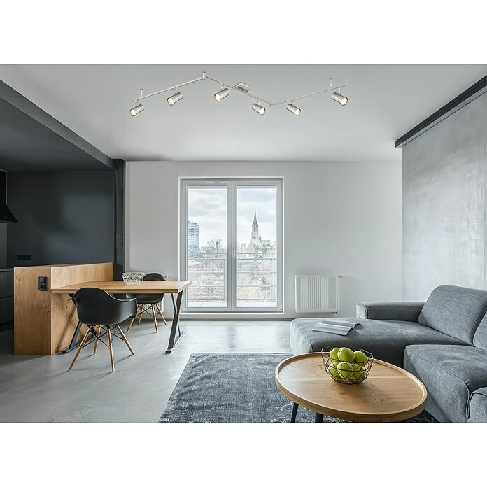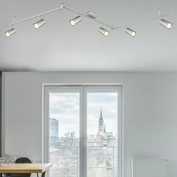 Dieser Globo Deckenstrahler aus der Robby-Serie (180×10 cm) überzeugt durch sein elegantes Design aus nickel-mattem Metall. Er besteht aus drei Metallstäben, an denen jeweils zwei schwenkbare, von Metall ummantelte GU10-Fassungen fixiert sind. Diese können Sie mit passenden Leuchtmitteln Ihrer Wahl bestücken, wodurch Sie die Möglichkeit habe, Lichtfarbe und Helligkeit nach Ihren Vorstellungen zu bestimmen. Durch weitere Artikel der gleichen Serie können Sie Ihre Innenräume stilvoll aufwerten.