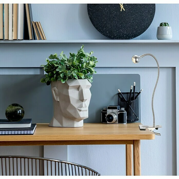 Der Globo Serpent LED-Klemmspot verfügt über eine schicke, matte Nickel-Optik mit einem sehr schönen Schirm aus Chrom. Diese Kombination macht den Klemmspot zu einem dezenten Begleiter in vielen Räumen des Wohnbereichs. Der Klemmspot kann durch seine stabile Klammer bequem an vielen Platten befestigt werden und sorgt so für eine zusätzliche Lichtquelle. Dieser LED-Klemmspot liefert eine helle aber trotzdem blendfreie, angenehme und warme Beleuchtung. Er verfügt über einen praktischen Flexarm, der eine individuelle Anpassung möglich macht, da er in verschiedenen Punkten gebogen werden kann. So können auch verwinkelte Ecken beleuchtet werden. Mit dem verbauten 3 Watt LED-Leuchtmittel ist eine energieeffiziente Beleuchtung möglich.