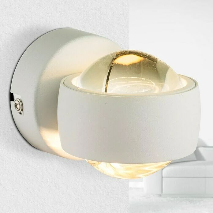 Aus der Serie Randi stammt diese kleine, aber feine Wandlampe, für die als Basis die Farbe Weiß gewählt wurde. Ein klares Glas dient zur Abdeckung der Leuchtmittel, wodurch eine elegante Optik erzielt werden kann. Die Leistung der zwei LEDs, zu jeweils 3 Watt, sorgt für die richtige Helligkeit, die Lichtstärke dieser Innenlampe liegt bei optimalen 420 Lumen und die Lichtfarbe von 3000K wird als ein angenehmes Warmweiß empfunden. Dieses Modell ist auch noch in weiteren Farben erhältlich.