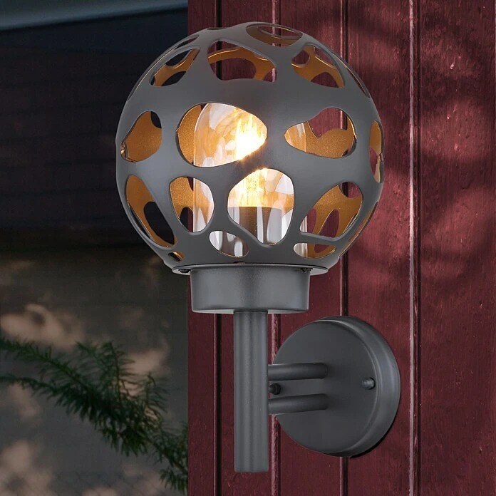 Sehr stylisch und modern beschreibt sich die Außenleuchte HILARIO aus anthrazitem Edelstahl. Durch die Dekorstanzungen wird dieses Modell zum echten Hingucker auf Ihrer Terrasse oder Ihrem Eingangsbereich. Die Schutzart IP44 schützt die Leuchte vor Spritzwasser und ist somit ideal für den Außenbereich. Des Weiteren können Sie das Leuchtmittel (exkl. E27 LED 15W) ganz nach Belieben auswählen und so Ihr perfektes Lichtergebnis erzielen.