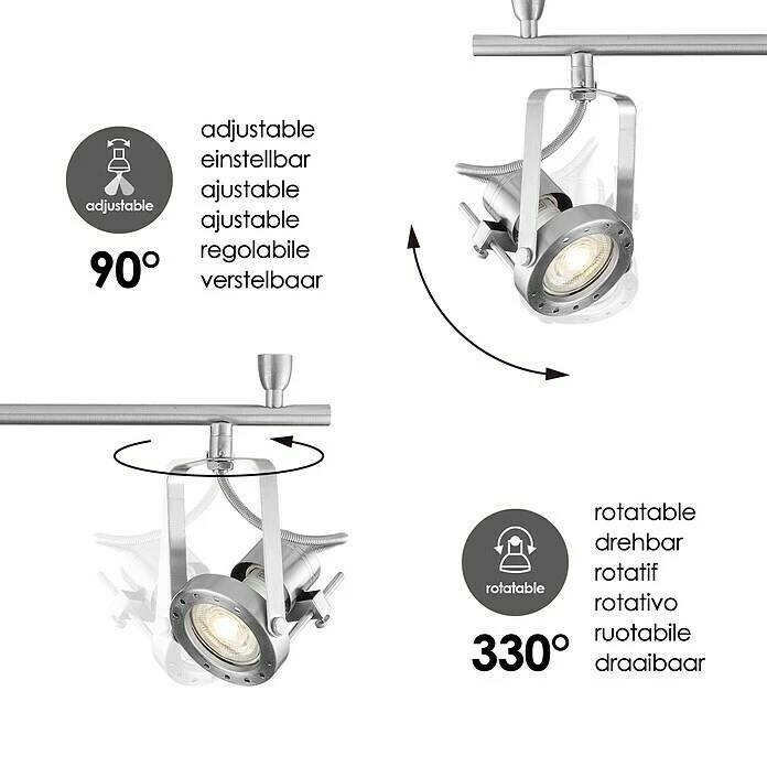 Die LED-Deckenleuchte Robo von Home Swee Home überzeugt durch ihr modernes Design, welches zum Hingucker in jedem Wohnraum wid. Die Leuchte enthält vier austauschbare LED-Leuchtmittel mit einer GU10 Fassung und 6W. Die warmweiße Lichtfarbe sorgt für Gemütlichkeit und lädt zum Verweilen ein. Die Leuchte kann bis zu 90 Grad geneigt und um 180 Grad gedreht werden. So haben Sie die nötige Flexibilität, um Ihre Beleuchtungspläne umzusetzen. Die LED-Leuchte erzeugt den perfekten Lichtstrahl, um Akzente zu setzen. Mit gebündeltem Licht können Sie jedes Detail Ihrer Inneneinrichtung nach Wunsch betonen und beleuchten.
