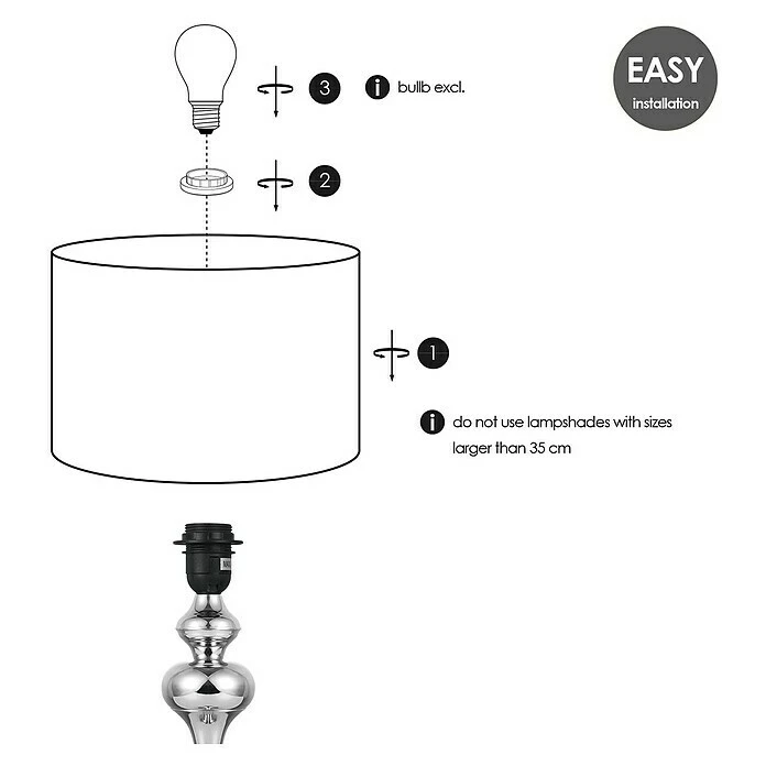 Home Sweet Home Lampenfuß Bima 40 W, Farbe: Chrom, Höhe: 35,6 Cm