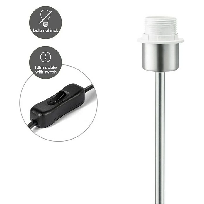 Der Home Sweet Home Lampenfuß Single überzeugt durch seine hochwertige Verarbeitung aus Stahl mit einer matten Oberfläche. Mit seiner zeitlosen Eleganz passt er sich vielen Wohnräumen und Einrichtungsstilen hervorragend an. Der Lampenfuß kann für ein individuelles Design mit passenden Lampenschirmen mit einem maximalen Durchmesser von 25 Zentimetern kombiniert werden. Der Lampenfuß ist für Leuchtmittel der Energieeffizienzklassen von A++ bis E mit E27-Fassung und maximal 40 Watt geeignet. Hierdurch kann Helligkeit und Strahlkraft nach individuellen Wünschen über die Auswahl des Leuchtmittels beeinflusst werden. Durch das 1,80 Meter lange Kabel ist ein Verschieben in diesem Radius problemlos möglich. Des Weiteren kann der Lampenfuß bequem durch einen Schalter an- und ausgeschaltet werden.