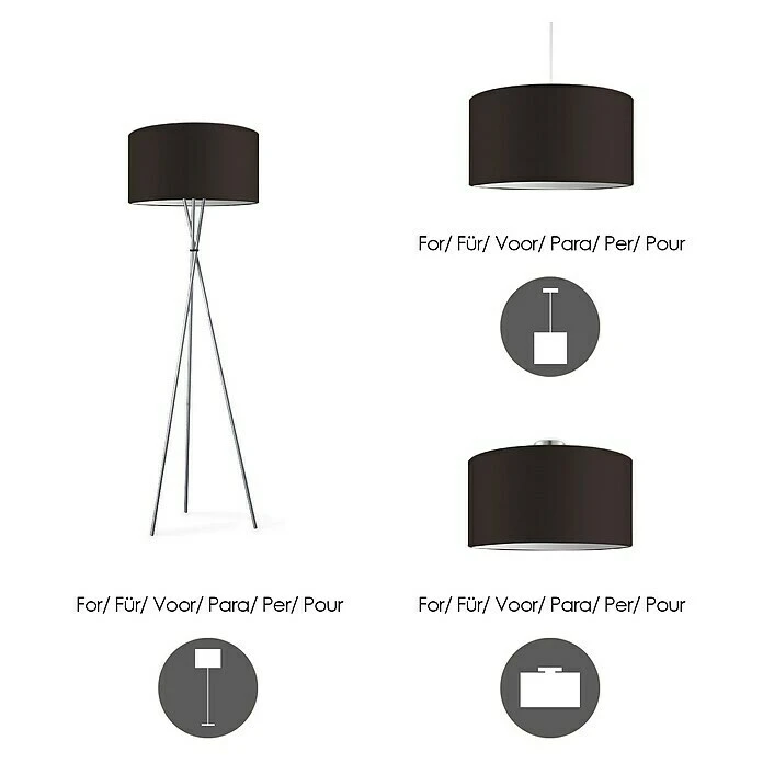 Der Home Sweet Home Lampenschirm Bling schafft eine angenehme Lichtverteilung in Räumen verschiedener Wohnbereiche. Er ist ideal zum Kombinieren mit verschiedenen Pendel-, Steh-, Tisch- und Wandleuchten sowie Lampenschirmgestellen mit E27 Fassung geeignet. Da der Lampenschirm in verschiedenen Farben und Größen erhältlich ist, kann er entsprechend dem jeweiligen Einrichtungsstil individuell ausgewählt werden. Hierdurch kann der hochwertige Lampenschirm aus Baumwolle verschiedenen Wohnbereichen einen ganz persönlichen Charme und dekorativen Blickfang verleihen. Bei der Nutzung mit Pendelleuchten kann er für eine Abschirmung nach unten sehr gut durch einen passenden Diffusor ergänzt werden.