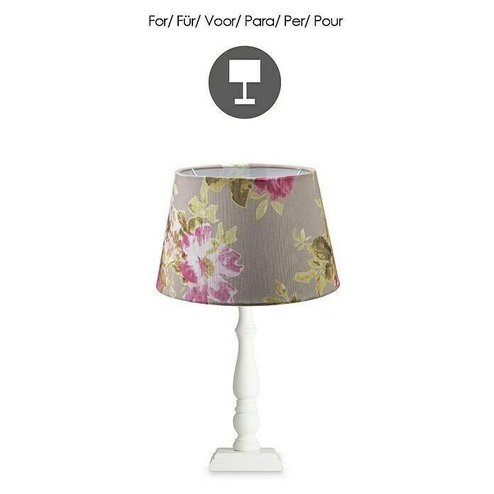 Der Home Sweet Home Lampenschirm Blumen sorgt für angenehm gestreutes, dekoratives Licht und überzeugt mit dem hübschen Blumendruck auf hellem Hintergrund. Der Lampenschirm ist aus Stoff gefertigt und in zwei verschiedenen Farben erhältlich. Er kann mit verschiedenen Lampenschirmgestellen und Pendel- oder Wandaufhängungen mit E27-Fassung kombiniert werden. So lassen sich in kurzer Zeit individuelle Leuchten nach eigenen Vorstellungen kreieren.