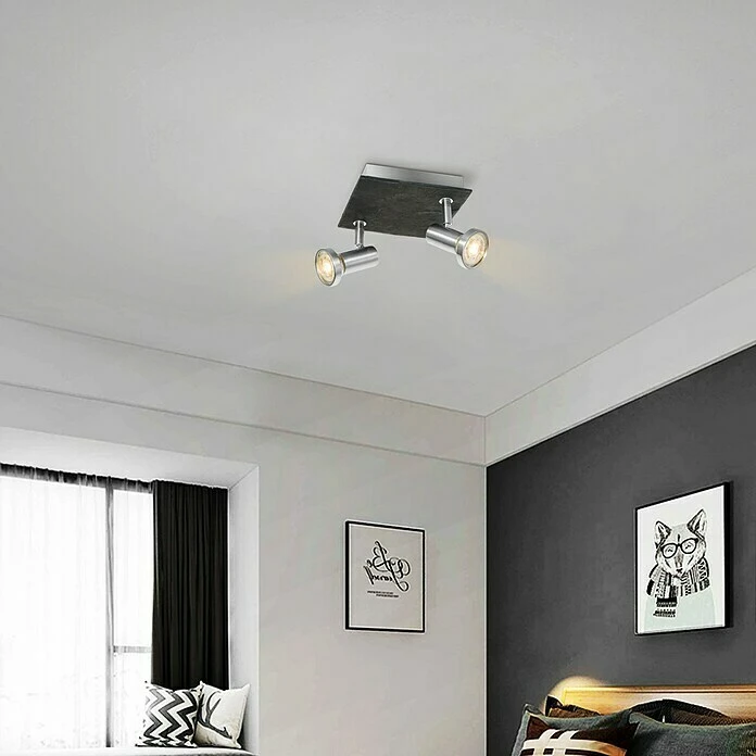 Die LED-Deckenleuchte Stone von Home Swee Home überzeugt durch ihr modernes Design, welches zum Hingucker in jedem Wohnraum wid. Die Leuchte enthält zwei austauschbare LED-Leuchtmittel mit einer GU10 Fassung und 6W. Die warmweiße Lichtfarbe sorgt für Gemütlichkeit und lädt zum Verweilen ein. Die Leuchte kann durch ihren Flexarm individuell verstellt werden. So haben Sie die nötige Flexibilität, um Ihre Beleuchtungspläne umzusetzen. Die LED-Leuchte erzeugt den perfekten Lichtstrahl, um Akzente zu setzen. Mit gebündeltem Licht können Sie jedes Detail Ihrer Inneneinrichtung nach Wunsch betonen und beleuchten.
