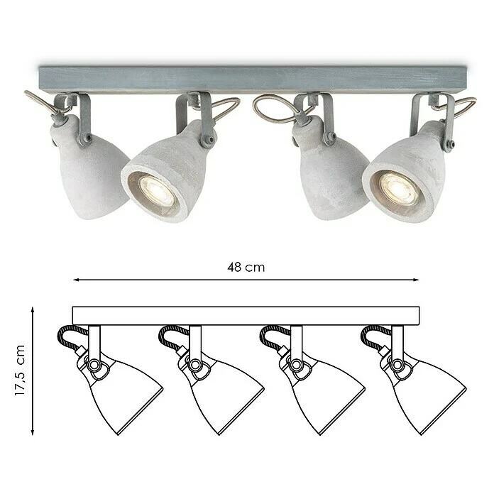 Home Sweet Home LED-Deckenstrahler Vedi 6 W, L X B X H: 9,5 X 48 X 17,5 Cm, Beton, Warmweiß