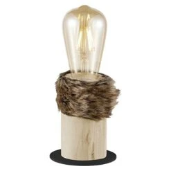 Die Home Sweet Home Tischleuchte Furdy überzeugt mit ihrem schlichten Design und vielfältigen Einsatzmöglichkeiten. Die Leuchte ist aus Holz und Metall gefertigt. Ein Kranz aus Kunstfell um den Leuchtensockel dient als besonderer optischer Blickfang. Zudem bringt die offene Bauweise der Leuchte dekorative Leuchtmittel besonders gut zur Geltung. Die Leuchte verfügt über einen E27-Sockel und eignet sich für Leuchtmittel bis maximal 10 Watt.