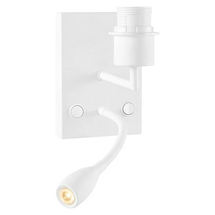 Die 2-flammige Wandleuchte Read von Home Sweet Home kann je nach Wunsch für eine gemütliche oder konzentrierte Atmosphäre sorgen. Sie verfügt zum einen über eine nach oben gerichtete E27-Fassung, die für ein Leuchtmittel bis maximal 40 Watt der Energieeffizienzklassen A++ bis E passend ist, wodurch die Helligkeit und Strahlkraft nach individuellen Wünschen gewählt werden kann. Um ein gemütliches Licht zu erzeugen bietet sich ein warmweißes Leuchtmittel an. Für eine wechselbare Beleuchtung kann ein RGB Leuchtmittel mit Farbsteuerung gewählt werden. Für eine blendfreie Beleuchtung kann es außerdem mit einem Lampenschirm von bis zu 20 Zentimetern kombiniert werden, was eine optische Gestaltung ganz nach eigenen Wünschen ermöglicht. Zum anderen verfügt die Wandleuchte auch noch über ein 18 Zentimeter langes, schwenkbares Leselicht mit fest verbautem LED-Leuchtmittel mit einer Leistung von 2,4 Watt, das eine zielgerichtete Beleuchtung ermöglicht. Die Wandleuchte verfügt über zwei separate Schalter, wodurch die jeweils gewünschte Lichtquelle einzeln oder zusammen genutzt werden kann.