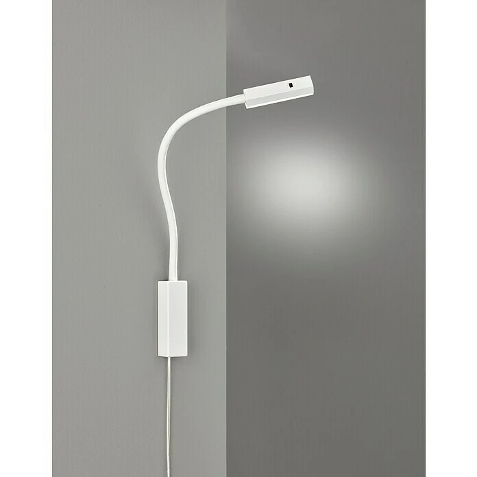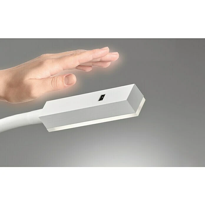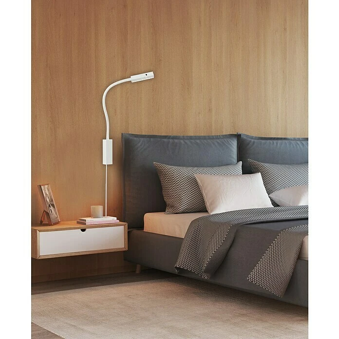 Diese praktische LED Leseleuchte Raik besticht nicht nur durch ihr zeitgemäßes, modernes Design, sondern vor allem durch ihre besonderen Features. Das besonderste Merkmal ist hierbei mit Sicherheit, dass sie sich sowohl als klassische Wandlampe als auch direkt an einem Möbelstück (z.B. Bett Kopfteil oder an der Couch) befestigen lässt. Die dimmbare Honsel Leuchte besteht aus weiß mattem Metall und ist flexibel biegsam, so dass sich die Leselampe Ihren persönlichen Lichtwünschen optimal anpasst. Die Abdeckung der Brennstelle aus satiniertem Acrylglas sorgt dabei für eine blendfreie Beleuchtung. Besonders pfiffig ist die integrierte Montageplatte, mit der sich die LED Leuchte an Möbeln oder am Bett befestigen lässt. Somit ist sie besonders vielseitig einsetzbar als Bettleuchte und Möbellampe. Wenn Sie sie klassisch als Wandleuchte montieren möchten, nutzen Sie einfach die mitgelieferte Abdeckung hierfür. Die Flexleuchte hat eine Ausladung von max. 35 cm und eine Breite von 4 cm (Leuchtenkopf). Sie ist mit einem Schuko-Stecker ausgestattet, so dass sie über jede Steckdose angeschlossen werden kann. Per Gestensteuerung können Sie die Möbelleuchte nun bequem bedienen: Eine Handbewegung reicht, um die Leuchte ein- und auszuschalten oder auch zum stufenlosen Dimmen. Ob als Leselampe zum Arbeiten und Lernen, als Nachttischlampe am Bett oder im Wohnraum als zusätzliche Lichtquelle, Wandleuchte und Couch Lampe: Einmal richtig in Szene gesetzt, überzeugt die Leseleuchte RAIK überall mit einem effektiven Licht. Die Möbelleuchte ist mit einem fest verbauten LED Modul ausgestattet, welches mit einer Leistung von 5 Watt und 470 Lumen in Warmweiß für optimale Lichtverhältnisse sorgt.