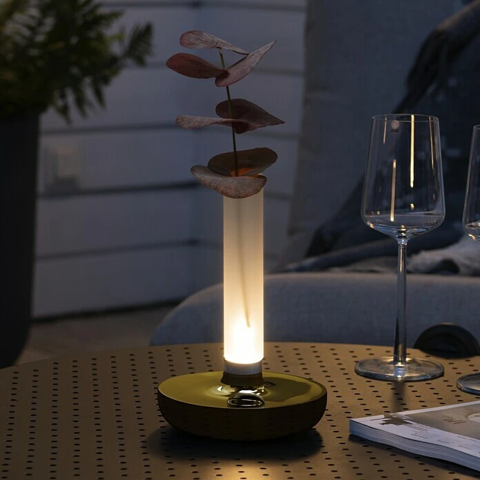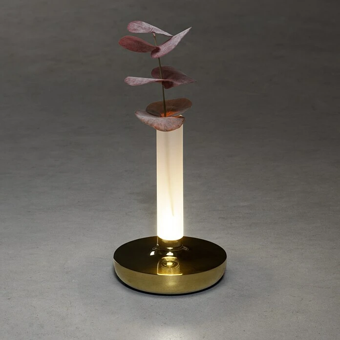 Elegante premium Akku-Tischleuchtenvase, die für den Einsatz im Innen- und Außenbereich geeignet ist. Die gesamte Leuchte ist hochwertig verarbeitet. Die Phiole ist aus opalem Echtglas und der Fuß vollständig aus Aluminium gefertigt. Durch ihr proportional hohes Gewicht und ihre rutschfesten Füße, hat sie eine hohe Standfestigkeit. Die Leuchte wird über eine USB-Ladeplattform (im Lieferumfang enthalten) geladen und leuchtet bis zu 20 Stunden. Über den Metall Drehring am Fuß lässt sich die Beleuchtung an und aus schalten, sowie die Dimmung (10-50 lm stufenlos) einstellen. Die Einstellung der Farbtemperatur (1800/3000/4000K) erfolgt über einen Druckknopf unter dem Fuß. Schaffen sie mit der Premium-USB-Akku-Leuchte von Konstsmide ein ganz besonderes Ambiente, ob zu Hause, im Garten oder in der Gastronomie.