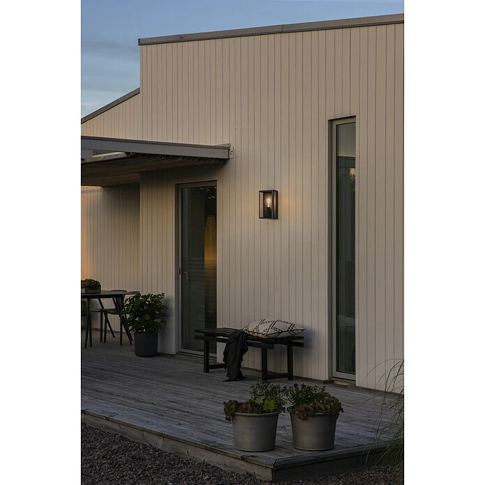 Die Konstsmide Außenwandleuchte Carpi ist mit ihrem mordernen Design ein wahrer Blickfang im Außenbereich. Die Leuchte eignet sich besonders gut zur Beleuchtung von Ein-/Auffahrten, Wegen oder auf dem Balkon bzw. der Terrasse. Die Wahl des Leuchtmittels bleibt dem Nutzer dank klassischer E27-Fassung selbst überlassen, somit ist als individuelle Beleuchtung von moderner Smart Steuerung bis zu klassischem Wohlfühlambiente alles möglich. Der robuste Aluminiumguss und das gegen Spritzwasser schützende (IP44) Klarglas verleihen der Leuchte eine hohe Langlebigkeit.