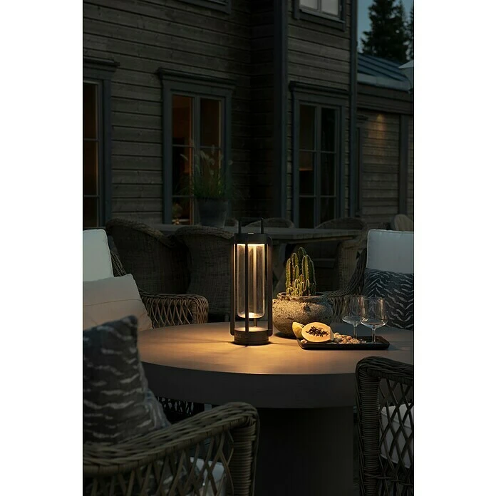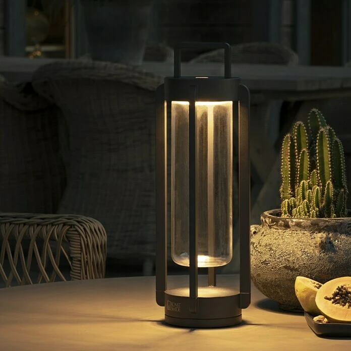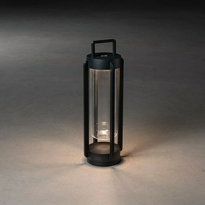 Die Konstsmide LED-Laterne Otranto ist mit der Schutzart IP54 gegen Spritzwasser geschützt. Sie kann innen sowie außen aufgestellt werden und erzeugt durch ihre einstellbare warmweiße Lichtfarbe ein tolles Ambiente für jede Situation. Zusätzlich besitzt die Leuchte auch eine Dimmfunktion. Durch ihre dezente Optik kann sie mit verschiedenen Designs harmonieren. Die Leuchte wird durch einen inkludierten LI-ION Batterien (3,7 V) betrieben und kann per USB-Kabel wieder aufgeladen werden. Die Laterne besteht aus massivem Aluminium und einem Echtglas-Zylinder.