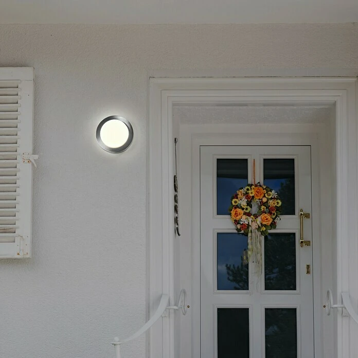 Die Wandleuchte Endura Disc Wall überzeugt durch ihr Design in Edelstahloptik. Es handelt sich um eine helle und funktionelle LED-Außenleuchten, mit integriertem LED-Leuchtmittel, welches langlebig und energiesparend zugleich ist. Das Gehäuse besteht aus hochwertigem Edelstahl. Durch die Schutzart IP44 ist der Artikel optimal für den Außenbereich geeignet und lässt sich sowohl für den Eingangsbereich als auch den Garten, Balkon oder Terrasse nutzen. Einfache und schnelle Installation durch vollständig enthaltenes Montage- und Anschlusszubehör.