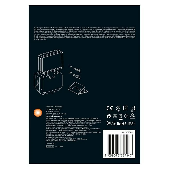 Ledvance Sensor-LED-Außenwandstrahler Single 4 W, Schwarz, Bewegungsmelder, 1-flammig