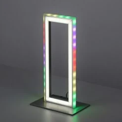 Die LED-Tischleuchte FELIX60 ist ein wahrer Hingucker, wenn es um Raumbeleuchtung geht. Die rechteckige Rahmenleuchte kann bequem mittels Schnurschalter ein- und ausgeschaltet werden. Das Highlight der Tischleuchte ist das innovative Sidelight, welches in RGB-Rainbow Farben leuchtet und mittels beiliegender Infrarot-Fernbedienung geschaltet werden kann. Hierbei kann man voreingestellte Lichtszenen auswählen, die wie ein farbiges Band rotierend, ein- oder mehrfarbig, schnell oder langsam durchlaufen. So wird die Leuchte nie langweilig! Durch das integrierte CCT-Lichtmanagement als Downlight können Sie die Farbtemperatur des Lichts von warmweiß (2.700 Kelvin) bis hin zu kaltweiß (5.000 Kelvin) steuern und somit die Lichtfarben eines Tagesablaufs simulieren. Über die Infrarot-Fernbedienung ist das Dimmen der Helligkeit ebenso möglich. Durch die Memory Funktion wird die letzte vorgenommene Einstellung gespeichert. Darüber hinaus ist die Tischlampe mit einem Serienschalter ausgestattet, welcher es Ihnen ermöglicht, nur das Sidelight, nur das Downlight oder aber Side- und Downlight einzustellen. Dank der weißen Kunststoffoberfläche gibt die LED Leuchte ein blendfreies Licht wieder. Die verwendete LED Technik nicht nur energiesparend – sie überzeugt auch durch die hohe Lebensdauer als auch die geringe Wärmeentwicklung.