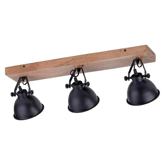 Der 3-flammige Samia Deckenstrahler von LeuchtenDirekt überzeugt durch seine Optik im Industrial-Design. Die Kombination von Metall und Holz und die auffälligen Schrauben lassen ihn zu einem Hingucker in vielen Wohnbereichen werden. Außerdem kann er durch seine Schwenkbarkeit nach persönlichen Bedürfnissen ausgerichtet werden. Der Deckenstrahler ist für Leuchtmittel der Energieeffizienzklassen von A++ bis E mit E14-Fassung und jeweils maximal 40 Watt ausgelegt. Hierdurch kann die Lichtfarbe und Helligkeit nach individuellen Wünschen über das Leuchtmittel angepasst werden. Mit Leuchten aus der gleichen Serie ideal kombinierbar für eine einheitliche Optik.