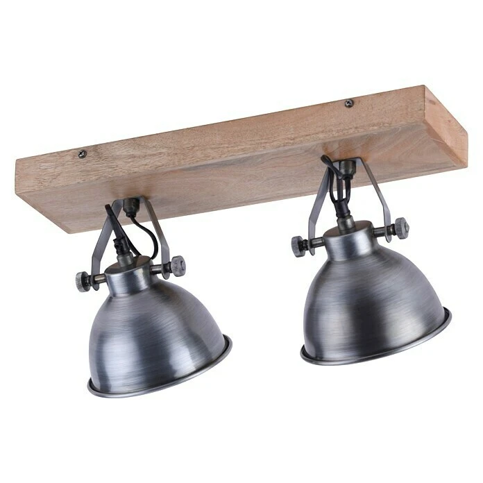 Der 2-flammige Samia Wand- und Deckenstrahler von LeuchtenDirekt überzeugt durch seine Optik im Industrial-Design. Die Kombination von Metall und Holz und die auffälligen Schrauben lassen ihn zu einem Hingucker in vielen Wohnbereichen werden. Außerdem kann er durch seine Schwenkbarkeit nach persönlichen Bedürfnissen ausgerichtet werden. Der Deckenstrahler ist für Leuchtmittel der Energieeffizienzklassen von A++ bis E mit E14-Fassung und jeweils maximal 40 Watt ausgelegt. Hierdurch kann die Lichtfarbe und Helligkeit nach individuellen Wünschen über das Leuchtmittel angepasst werden. Mit Leuchten und Strahlern aus der gleichen Serie ideal kombinierbar für eine einheitliche Optik.