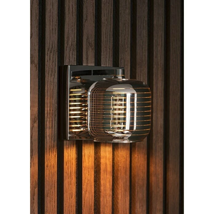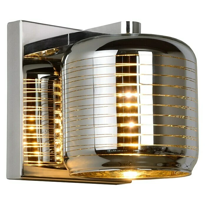 Die Lucide Wandleuchte Eryn strahlt mit ihrem ungewöhnlichen Leuchtschirm ein elegantes Design aus und taucht jeden Wohnraum in ein angenehmes Licht. Der runde Leuchtschirm ist in hell goldenen Farbtönen in Streifenmuster gehalten. Durch das verchromte Glas wird das Licht unterschiedlich gebrochen und wiedergespiegelt. Sie ist mit einer G9-Fassung ausgestattet und für alle Leuchtmittel der Energieeffizienzklassen von A++ bis E mit maximal 42 Watt geeignet, wodurch die Strahlkraft nach individuellen Wünschen wählbar ist. Die Wandleuchte eignet sich ideal für die zusätzliche Beleuchtung am Bett oder in der Leseecke.