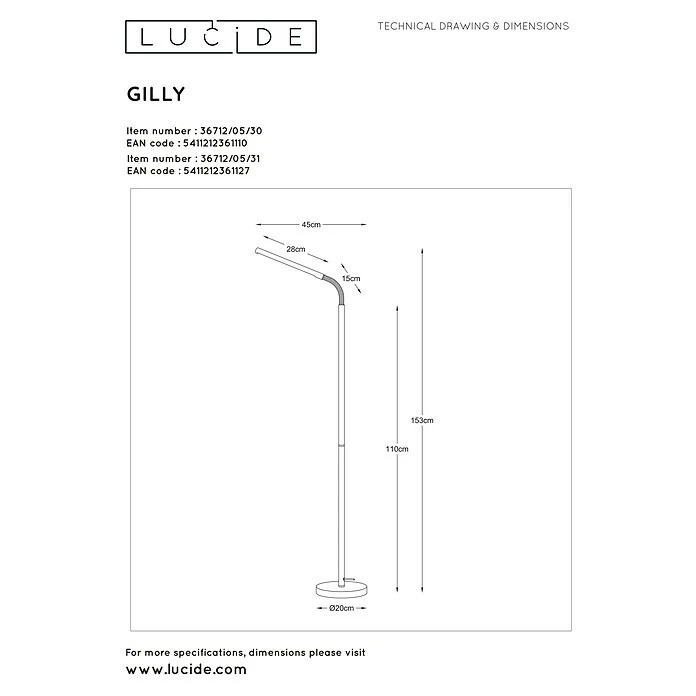Die schlanke, schwarze stilvolle Stehlampe Gilly von Lucide hat einen flexiblen Leuchtenarm, damit Sie egal in welchem Raum, eine optimale Lesebeleuchtung haben. Mit einem bereits fest verbautem LED-Leuchtmittel kann die Lampe direkt in Betrieb genommen werden. Die Lampe ist höhenverstellbar zwischen 119 und 151 cm und somit Ideal als Leselampe geeignet.