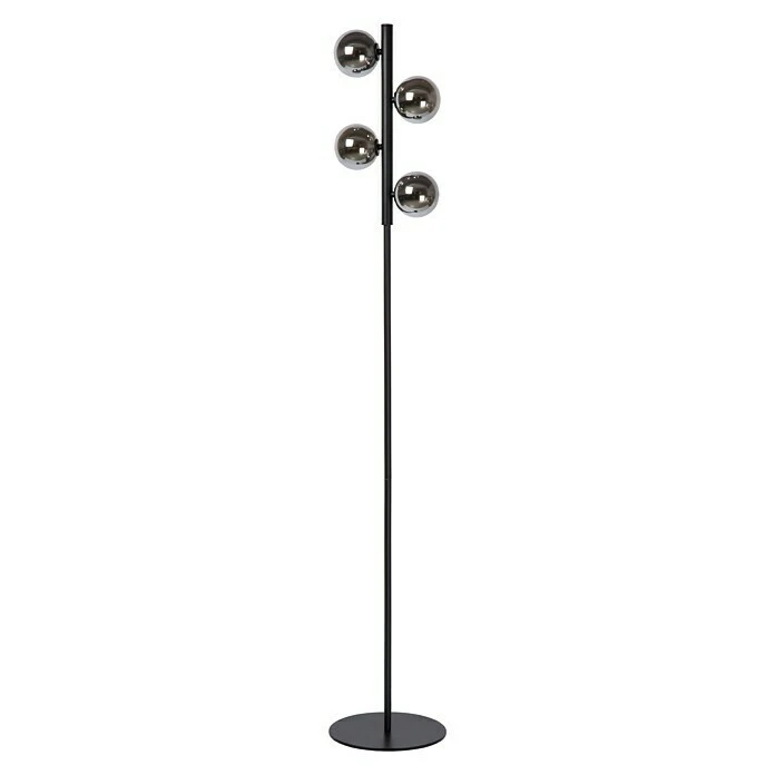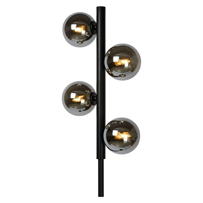 Die Lucide Stehleuchte Tycho überzeugt mit ihrer eleganten und zeitlosen Optik. Sie ist aus hochwertigem Stahl und Echtglas gefertigt, welches ihr eine luxuriöse Form verleiht. Die vier Leuchtschirme sind auf unterschiedlicher Höhe 180° zueinander positioniert und an der Stahlbasis befestigt. Bedienbar ist die Stehleuchte mithilfe eines 180 cm langen An- und Ausschalters auf dem Kabel. Das Leuchten aus dem Kern der Glaskugeln strahlt ein angenehmes Licht ab und führt zu tollen Lichteffekten. Die Tischleuchte ist für Leuchtmittel mit einer G9-Fassung und der Energieklasse von A++ bis E mit maximal 28 Watt geeignet. Die Strahlkraft ist also nach individuellen Wünschen wählbar. Sie hat eine Höhe von 1,5 m und bildet ein ansprechendes Accessoire in jeder Wohnecke.