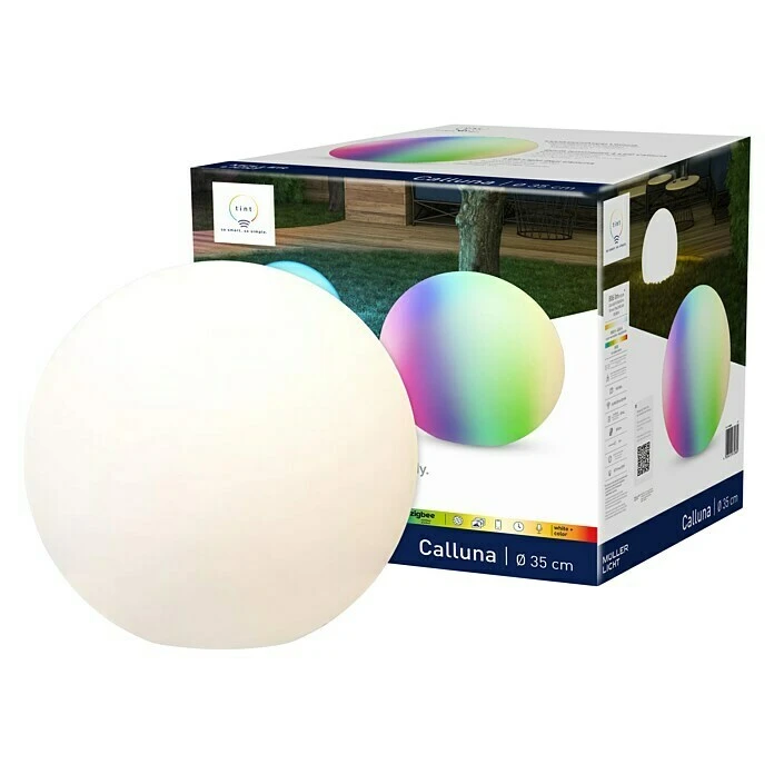 Die Tint Outdoor LED-Kugel von Müller-Licht ist ein Highlight in jedem Garten. Durch die individuell einstellbare Stimmungsbeleuchtung wird eine ganz besondere Atmosphäre geschaffen. So ist es möglich, neben verschiedenen Weißtönen, auch zwischen 16 Millionen Farben auszuwählen. Bedienen kann man die LED-Leuchtkugel entweder einfach durch die zusätzlich erhältliche Tint-Fernbedienung und/oder bequem mit einem Smart-Home-System über das Smartphone sowie per Sprachassistenten. Darüber hinaus ist sie Spritzwassergeschützt und kommt mit einem mitgelieferten Erdspieß zum einfachen Platzieren auf dem Rasen oder im Beet.