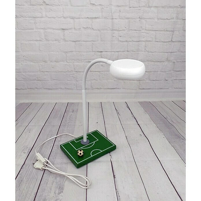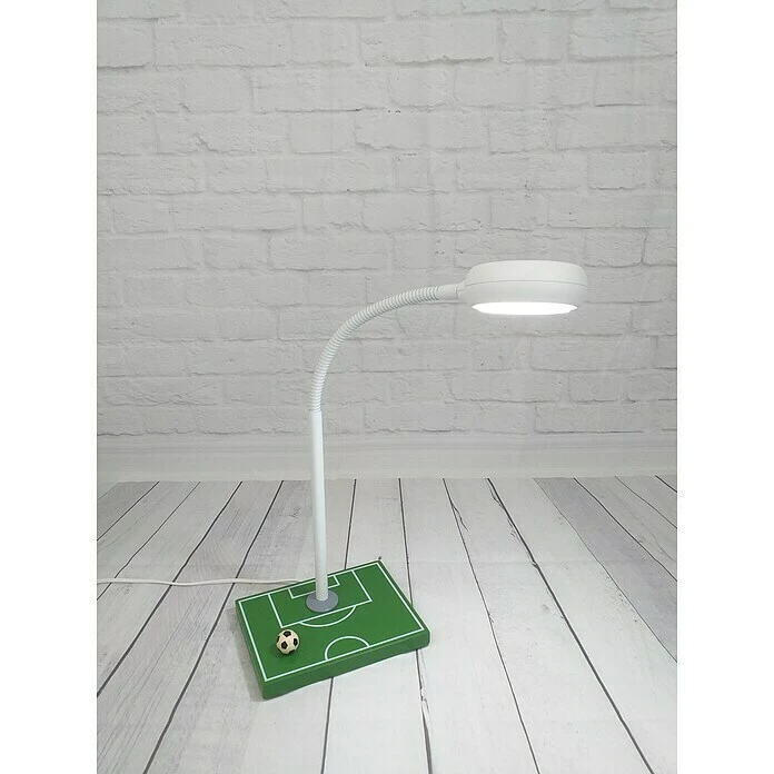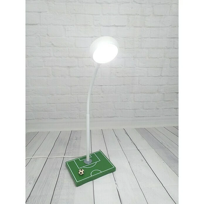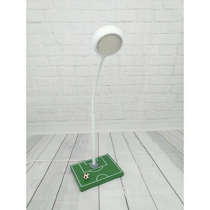 Witzige Tisch-Leseleuchte mit moderner LED-Technologie: die Fußballfeld-Leuchte ist ein Must-have für alle Fußballfans! Die Leseleuchte wird einfach mittels Eurostecker in die Steckdose eingesteckt und verfügt über einen Zwischenschalter zum bequemen Ein- und Ausschalten. Das obere Stücke des Flexrohrs ist flexibel und bietet Ihnen die Möglichkeit, die Leuchte so auszurichten wie sie es brauchen. So eignet sich die Leuchte optimal für das Lesen und Arbeiten am Schreibtisch. Bei der Leuchte ist ein GX53 Leuchtmittel mit 7-9W inklusive.