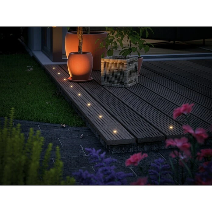 Das Paulmann Plug & Shine LED-Gartenspot-Set MicroPen II ist ideal um im Garten oder auf der Terrasse dekorative Akzente zu setzen. Die 5 Spots sind aus Edelstahl gefertigt und strahlen warmweißes Licht ab. Sie sind dank IP 67 tauchwassergeschützt. Die fest eingebauten LED-Leuchtmittel sind umweltfreundlich, energieeffizient und überzeugen mit einer langen Lebensdauer. Ein passender Trafo und benötigte Kabel sind separat erhältlich, die Leuchte ist mit allen Zubehörteilen der Plug & Shine-Serie kombinierbar.