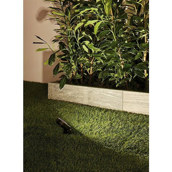 Der Paulmann Plug&Shine LED-Gartenspot Sting setzt Pflanzen oder Gegenstände hervorragend in Szene. Er ist aus Aluminium in Anthrazit gefertigt und rostfrei. Außerdem hat er einen Ausstrahlwinkel von 100 Grad und spendet angenehm warmweißes Licht. Dank Schutzart IP67 schädigt ihn ein zeitweiliges Untertauchen nicht. Das fest verbaute LED-Leuchtmittel bietet durch seine Energieeffizienz ein Einsparpotenzial. Ein passender Trafo und ein Kabel sind separat erhältlich und der Erdspießstrahler ist mit allen Zubehörteilen der Plug&Shine-Serie kombinierbar.