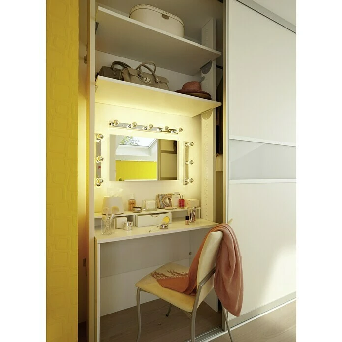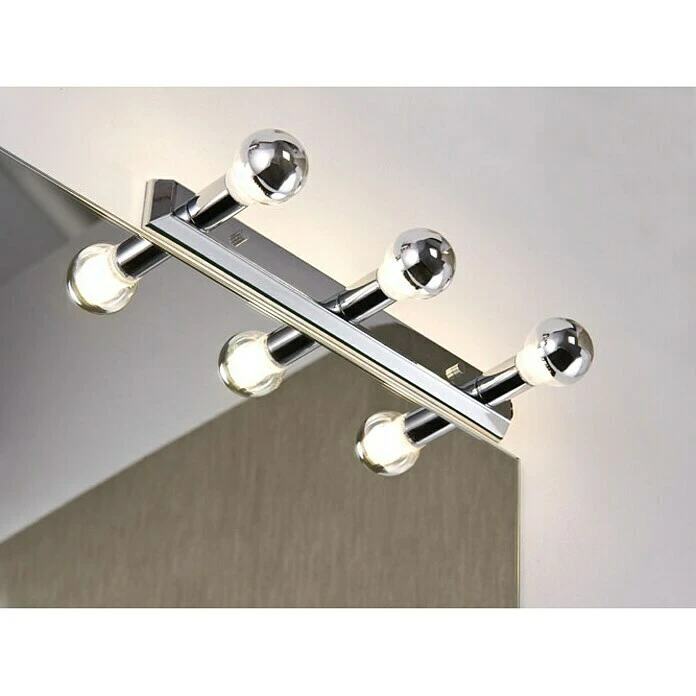 Die 3-flammige Spiegelleuchte Regula von Paulmann überzeugt als zusätzliche Lichtquelle rund um verschiedene Spiegel herum. In Kombination mit verspiegelten Leuchtmitteln kann eine sehr angenehme und blendfreie Beleuchtung erreicht werden, die aufgrund der leicht gerichteten Streuung des Lichtes für eine gute Ausleuchtung des jeweiligen Spiegels sorgt. Die Spiegelleuchte ist für Leuchtmittel der Energieeffizienzklassen von A++ bis E mit E14 Fassung und jeweils maximal 40 Watt geeignet. Über den verbauten Schalter lässt sie sich bequem ein- und ausschalten.