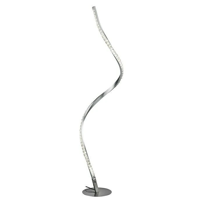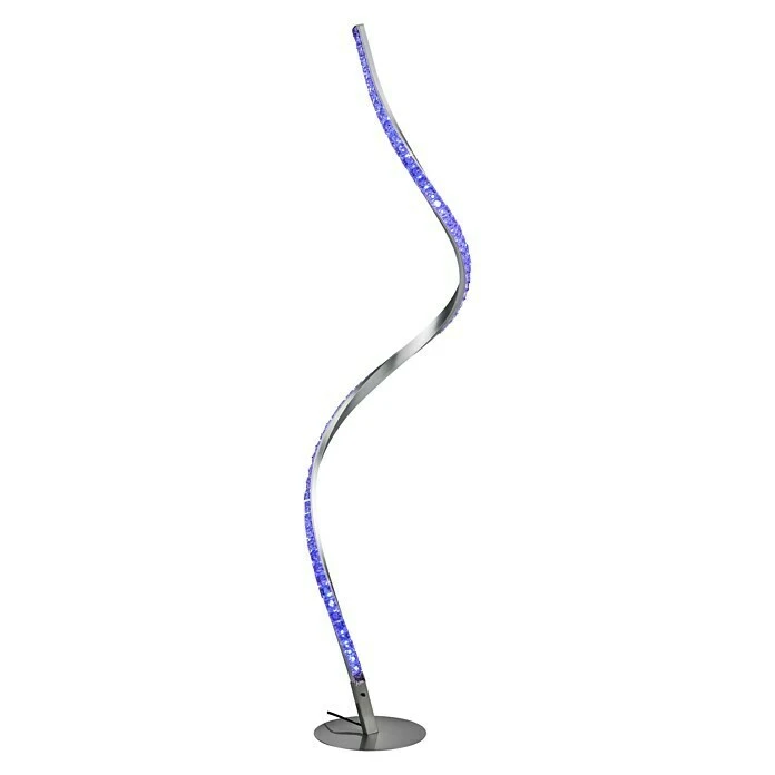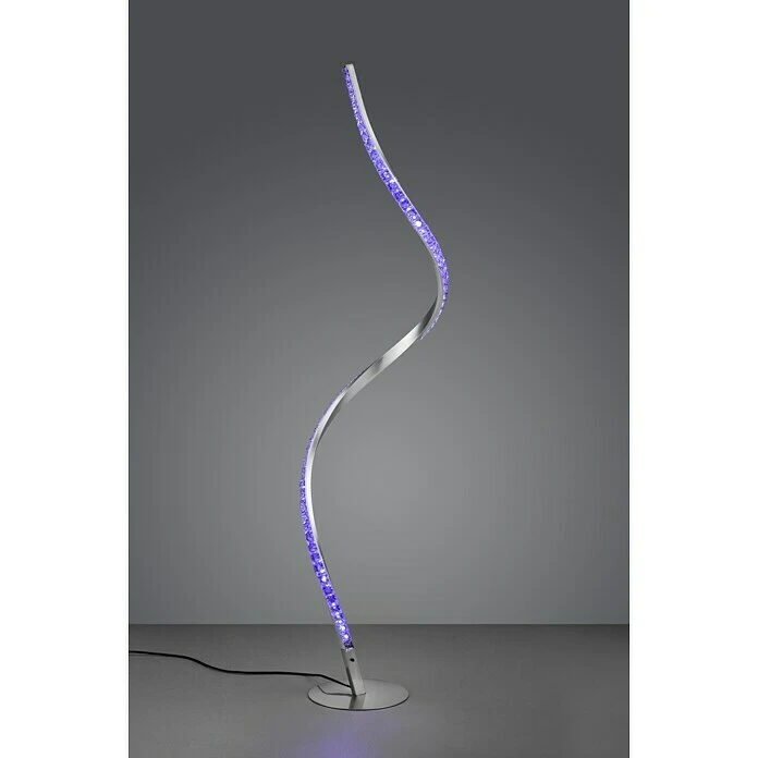 Die LED-Stehleuchte Rubin von Reality Leuchten überzeugt mit ihrer ausgefallenen Wellenoptik und verschiedenen Lichtfunktionen. Mit dem integrierten RGBW-Farbwechsler kann über die beiliegende Fernbedienung eine große Farbauswahl getroffen werden. Zusätzlich lässt sich die Helligkeit stufenlos dimmen, so dass diese je nach Lichtverhältnissen individuell angepasst werden kann. Das ausgefallene Design mit Kristallcover schafft zusätzlich einen effektvollen Blickfang in Ihrem Wohnraum und wertet dunkle Ecken stilvoll auf. Die moderne Stehleuchte hat eine Höhe von 116 cm und einen Durchmesser von 18 cm. Die Farbgestaltung in Chrom und das Kristallcover bilden einen stilvollen Kontrast zu den Lichtfarben und runden das Gesamtbild ideal ab. Darüber hinaus verfügt die Leuchte über eine moderne LED Technologie, die sich durch eine hohe Lichtqualität und Energieeffizienz auszeichnet. Im Vergleich zu herkömmlichen Halogen Leuchtmitteln lassen sich bis zu 80% der Energiekosten sparen. Zusätzlich haben LED Lichtquellen eine lange Lebensdauer, produzieren weniger Wärme und schonen die Umwelt.