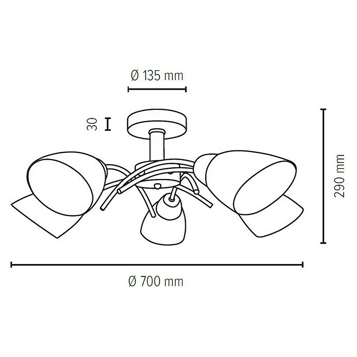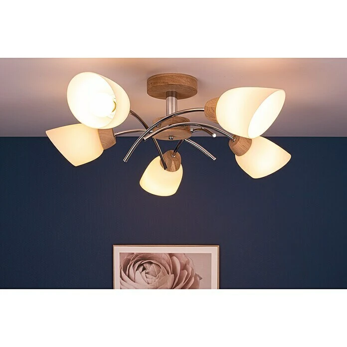 Spotlight Deckenstrahler Rund Viletta Wood 60 W, Geölte Eiche, Weiß, E27, 5 Stk.