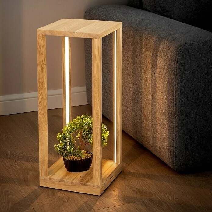 Die 4-flammige LED-Stehleuchte Tavoli von Spotlight ist dezent in einer modernen Naturoptik gestaltet. Hierdurch passt sie sich in diverse Raumkonzepte und fügt sich gut in verschiedene Wohnumgebungen ein. Dabei überzeugt sie durch ihre optimale Belichtung ohne Verblendung der Lichtintensität. Die warmweiße Lichtfarbe verleiht der Umgebung dabei ein heimisches und wohliges Ambiente, wodurch eine entspannte Atmosphäre entsteht. Besonders an dieser Leuchte ist, dass sie aus Echtholz gefertigt ist. Dies unterstreicht die hochwertige Verarbeitung und das exklusive Design. Gleichzeitig ist sie durch die fest verbaute LED-Technologie äußerst energiesparend und langlebig. Über den Touch-Dimmer ist die Tischleuchte nach individuellen Bedürfnissen dimmbar.
