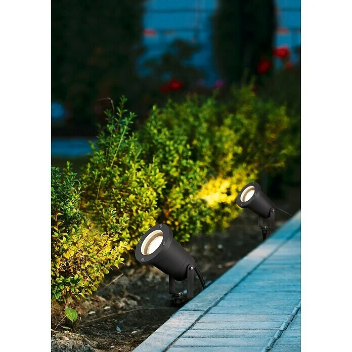 Einladend und wirkungsvoll – die Außenleuchten URBANGI von Trio Leuchten setzt stimmungsvolle Lichtakzente rund ums Haus. Die dekorative Gartenbeleuchtung hat eine fünf Meter lange Zuleitung und wird mit einem Erdspieß geliefert, so dass Sie diese problemlos in Ihrem Garten befestigen können. Der Spot hat einen Durchmesser von ca. 9 cm und ist durch die Schutzart IP65 äußerst witterungsbeständig. Dank der dezenten Farbgestaltung in Anthrazit lässt sich die Außenleuchte stilvoll in verschiedene Gartenkonzepte integrieren. Für eine energiesparende Beleuchtung empfiehlt sich die Verwendung eines LED Leuchtmittels. Diese sind eine optimale Alternative zu herkömmlichen Halogen Leuchtmitteln und stehen für eine hohe Lichtqualität und eine Energieeinsparung von bis zu 80%. Zusätzlich profitieren Sie bei LED Leuchtmitteln von einer langen Lebensdauer, einer geringen Wärmeentwicklung und schonen gleichzeitig die Umwelt.