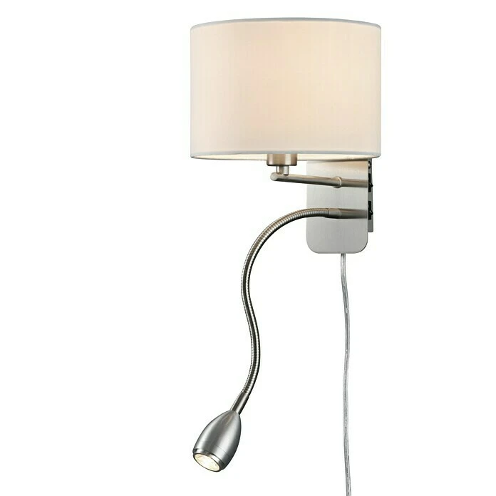 Die Wandleuchte HOTEL kombiniert ein einzigartiges Design mit einer funktionellen Ausstattung. Der mit Stoff bezogene Schirm erzeugt ein gleichmäßiges blendfreies Licht. Der praktische Lesearm kann durch den Flex-Arm individuell ausgerichtet werden. Durch zwei Schalter an der Seite der Leuchte können der Haupt-Schirm und der Lesearm getrennt voneinander geschaltet werden. Dadurch eignet sich die Wandleuchte HOTEL vor allem als Alternative zu einer klassischen Nachttischleuchte. Dank der klassischen Farbgestaltung in Nickel matt und dem weißen Schirm kann die Leuchte mit vielen Einrichtungsstilen kombiniert werden. Für eine energiesparende Beleuchtung empfiehlt sich die Verwendung eines LED Leuchtmittels im Hauptschirm. Diese sind eine optimale Alternative zu herkömmlichen Halogen Leuchtmitteln und stehen für eine hohe Lichtqualität und eine Energieeinsparung von bis zu 80%. Zusätzlich profitieren Sie bei LED Leuchtmitteln von einer langen Lebensdauer, einer geringen Wärmeentwicklung und schonen gleichzeitig die Umwelt. Darüber hinaus verfügt die Leuchte über eine moderne LED Technologie im Lesearm, die sich durch eine hohe Lichtqualität und Energieeffizienz auszeichnet.