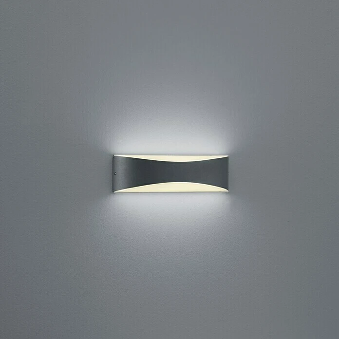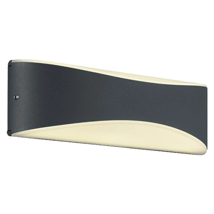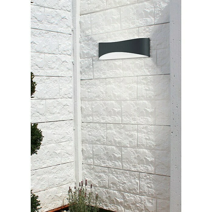 Die Wandleuchte KONDA erzeugt eine stimmungsvolle Atmosphäre in Ihrem Außenbereich. Das schlichte, anthrazitfarbene Design der Leuchte, die hochwertige Verarbeitung und die Ausstrahlung des Lichts nach oben und unten sorgen für wunderbare Akzente. Das Licht wird durch weißen Kunststoff gefiltert und versorgt den Außenbereich optimal mit einer angenehmen Lichtintensität.Wird die KONDA mit einer zweiten Wandleuchte kombiniert, kann beispielsweise der Eingangsbereich Ihres Hauses wunderbar in Szene gesetzt werden. Die Leuchte hat eine IP65 Klassifikation und enthält ein LED Leuchtmittel mit einer Leistung von 9 Watt, 850 Lumen und einer Farbtemperatur von 3000 Kelvin. Mit einer Breite von 23 cm und eine Höhe von 7,2 cm und einer Auslage von nur 5,6cm wirkt die Außenleuchte dezent und nicht zu aufdringlich.