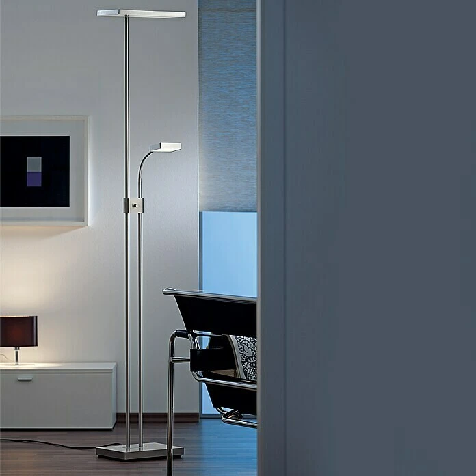 Die Hauptleuchte des Tween Light LED-Deckenfluters Texas lässt sich problemlos in unterschiedliche Helligkeitsstufen einstellen, die Leseleuchte hingegen ist separat schaltbar mit einem Berührungsschalter. Der Drehdimmer der Hauptleuchte befindet sich mittig zwischen den beiden Standrohren. Somit werden dank des schwenkbaren Kopfes der Hauptleuchte und auch des Flexarmes der Leseleuchte jederzeit die richtigen Lichtverhältnisse gewährleistet – für einen gemütlichen Abend, eine fesselnde Lektüre oder einfach zur stimmungsvollen Raumbeleuchtung.