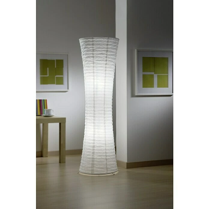 Die Stehleuchte Quintana überzeugt durch ihren einfachen und dennoch entspannten Look. Durch sie erhalten Sie in Ihren Wohnbereichen ein ruhiges und angenehmes Wohlfühlklima, in dem Sie entspannen können. Die aus Papier bestehende Leuchte läuft in der Mitte zusammen. Aufgrund der zwei Leuchtmittel mit E 27 Fassung und 60 Watt verbreitet die Leuchte ein sehr angenehmes Licht.